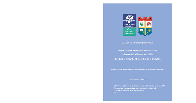 La CAF tiendra une permanence à Drap le mercredi 3 décembre. […]