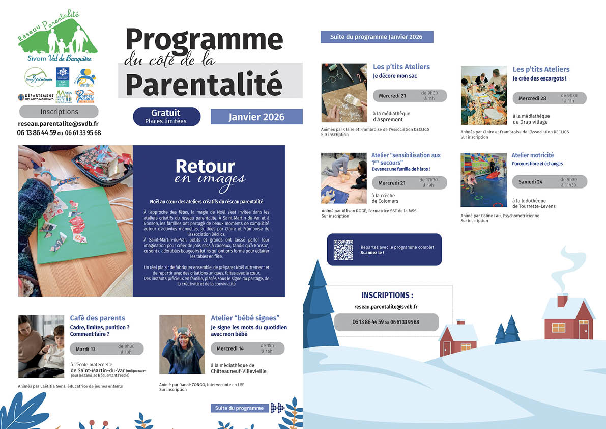 Gratuit – inscriptions reseau.parentalite@svdb.fr ou 06 13 86 44 59 ou 06 61 33 95 68