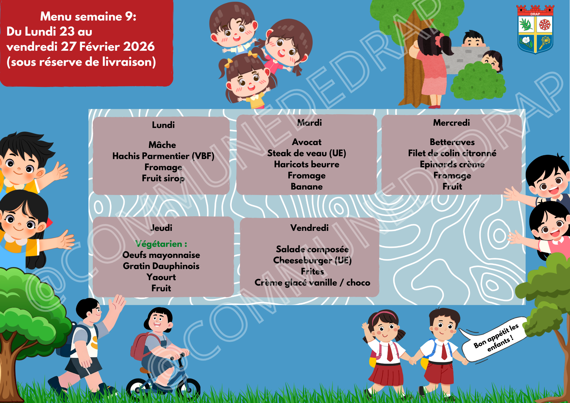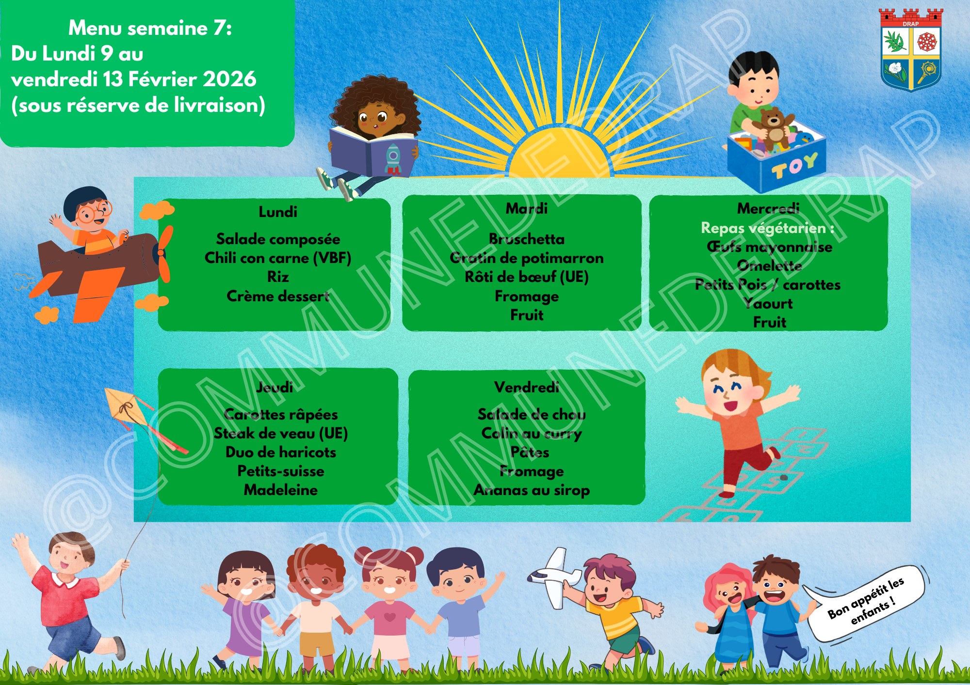 A noter : la Municipalité de Drap a mis en place le dispositif « Petits-déjeuners » le 15 novembre. En raison du contexte sanitaire, le service prévu lors de la rentrée scolaire de janvier 2022 ne pourra avoir lieu. Il est reporté et se déroulera dès que la situation sanitaire le permettra. La Municipalité de Drap vous remercie de votre compréhension.
