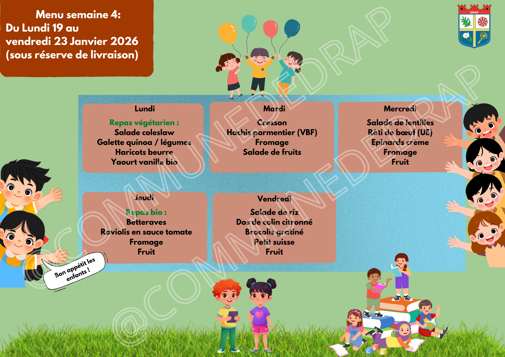 A noter : la Municipalité de Drap a mis en place le dispositif « Petits-déjeuners » le 15 novembre. En raison du contexte sanitaire, le service prévu lors de la rentrée scolaire de janvier 2022 ne pourra avoir lieu. Il est reporté et se déroulera dès que la situation sanitaire le permettra. La Municipalité de Drap vous remercie de votre compréhension.