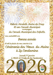 Robert Nardelli Maire de Drap et son Conseil Municipal accompagnés du Conseil Municipal des Enfants vous souhaitent une excellente année 2026