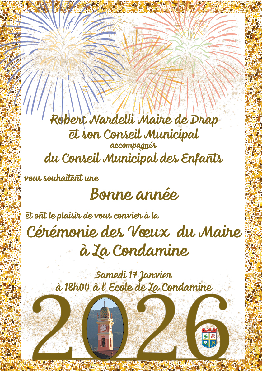 Ils vous donnent rendez-vous le samedi 17 janvier à 18 h 00 pour la cérémonie des vœux du Maire à La Condamine.