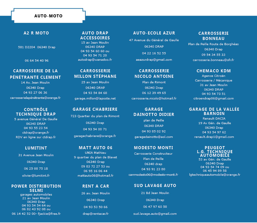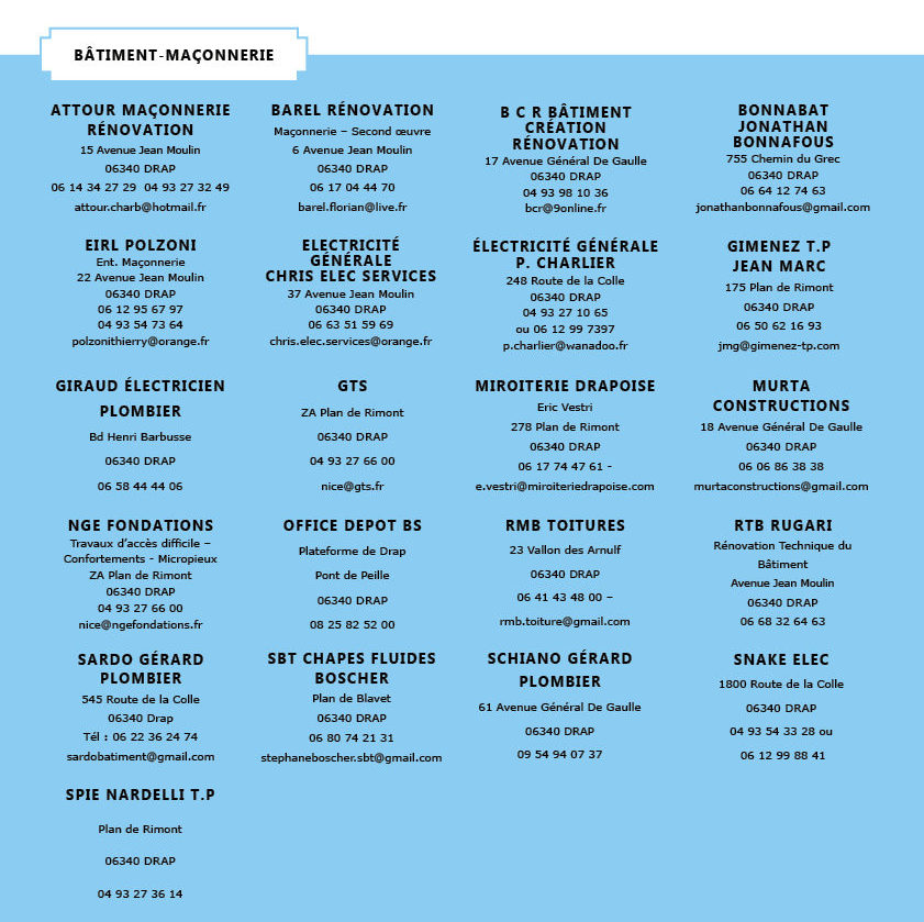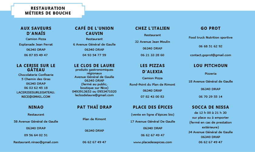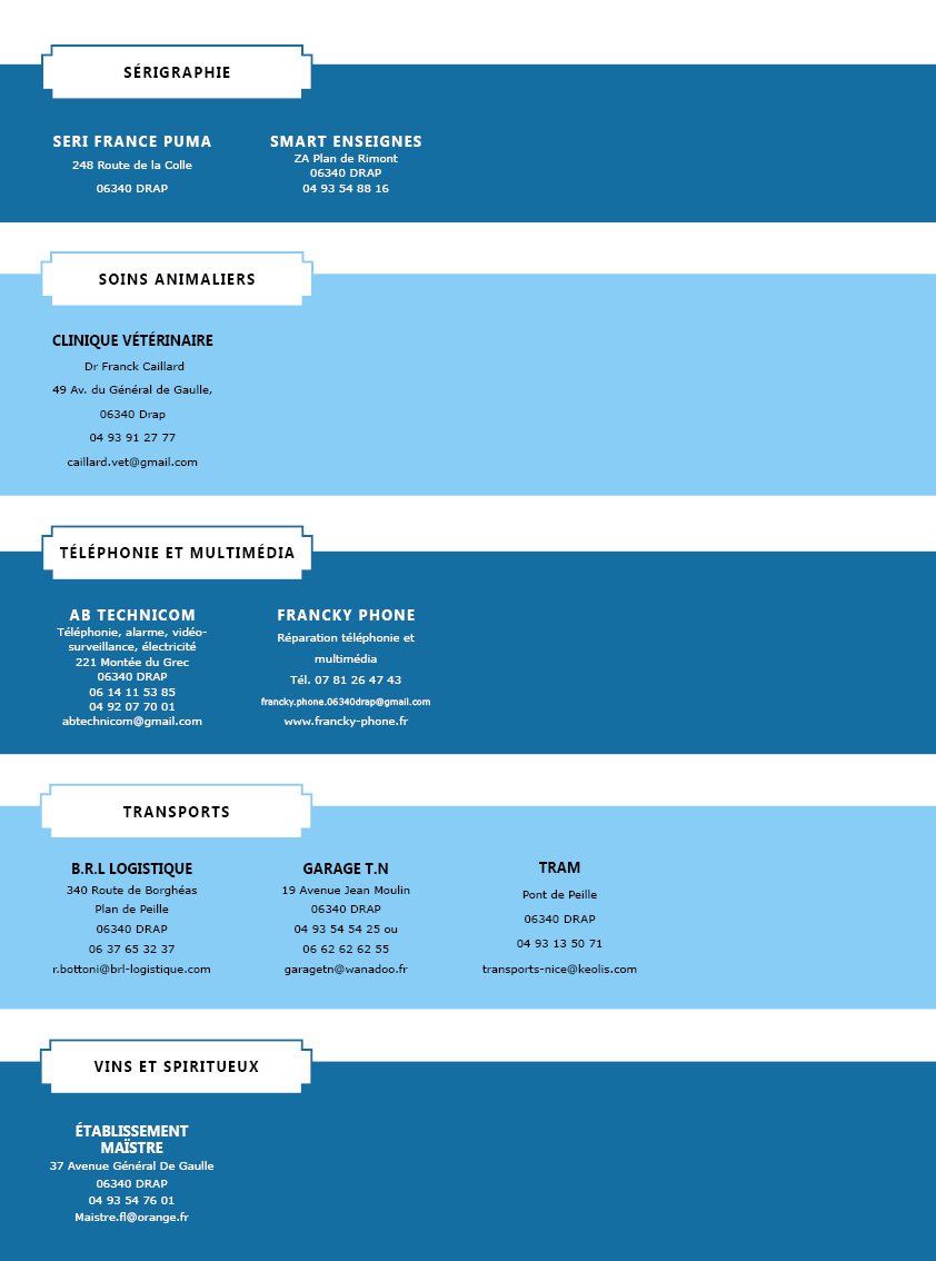 Drap est une ville attractive, qui dispose d’un tissu économique riche. Retrouvez dans cette rubrique la liste non exhaustive des commerces et entreprises y sont implantés.